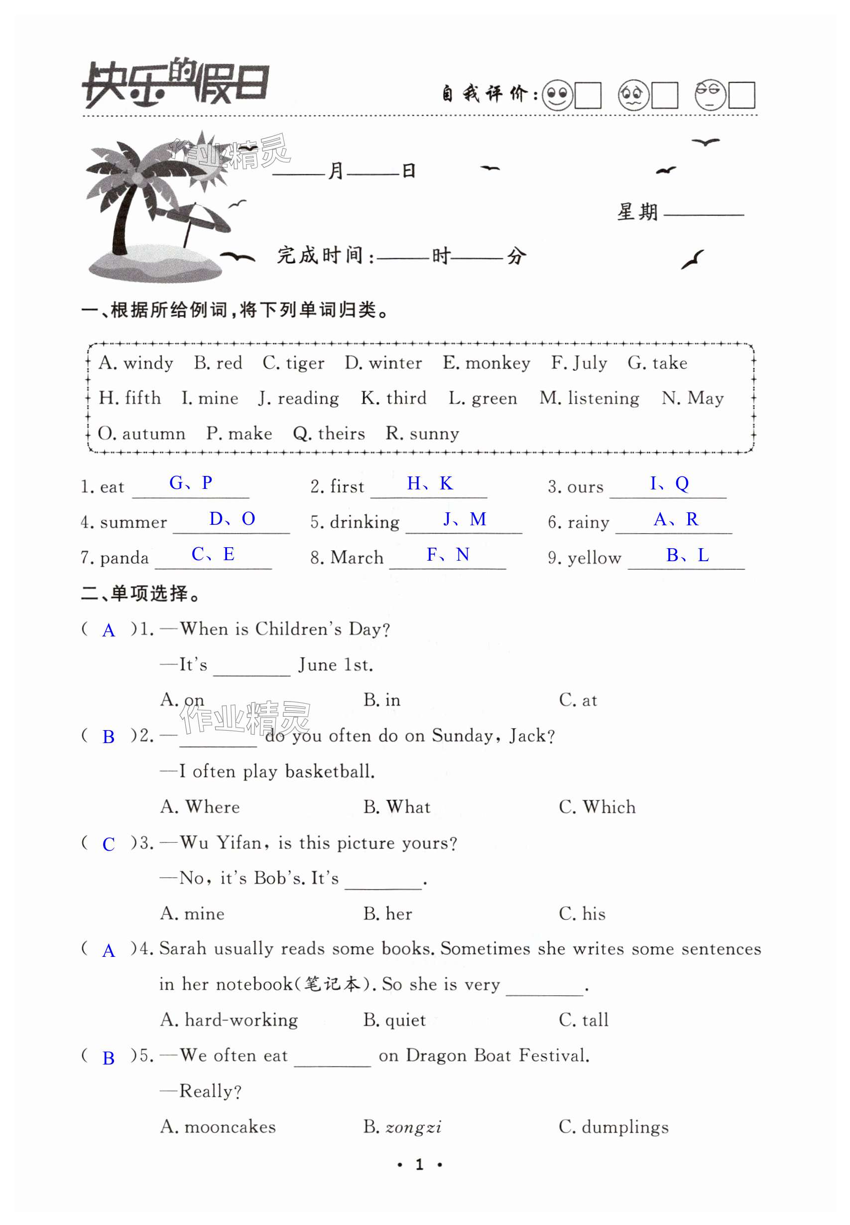 注:目前有些书本章节名称可能整理的还不是很完善,但都是按照顺序排列的,请同学们按照顺序仔细查找。练习册 2025年暑假作业快乐的假日五年级英语 答案主要是用来给同学们做完题方便对答案用的,请勿直接抄袭。