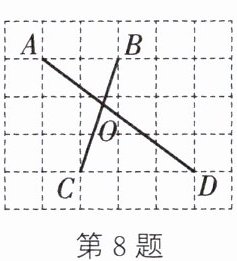 8. (镇江中考)如图,点$A$,$B$,$C$,$D$在网格中小正方形的顶点处,$AD与BC相交于点O$,小正方形的边长为1,则$AO$的长为 ( )