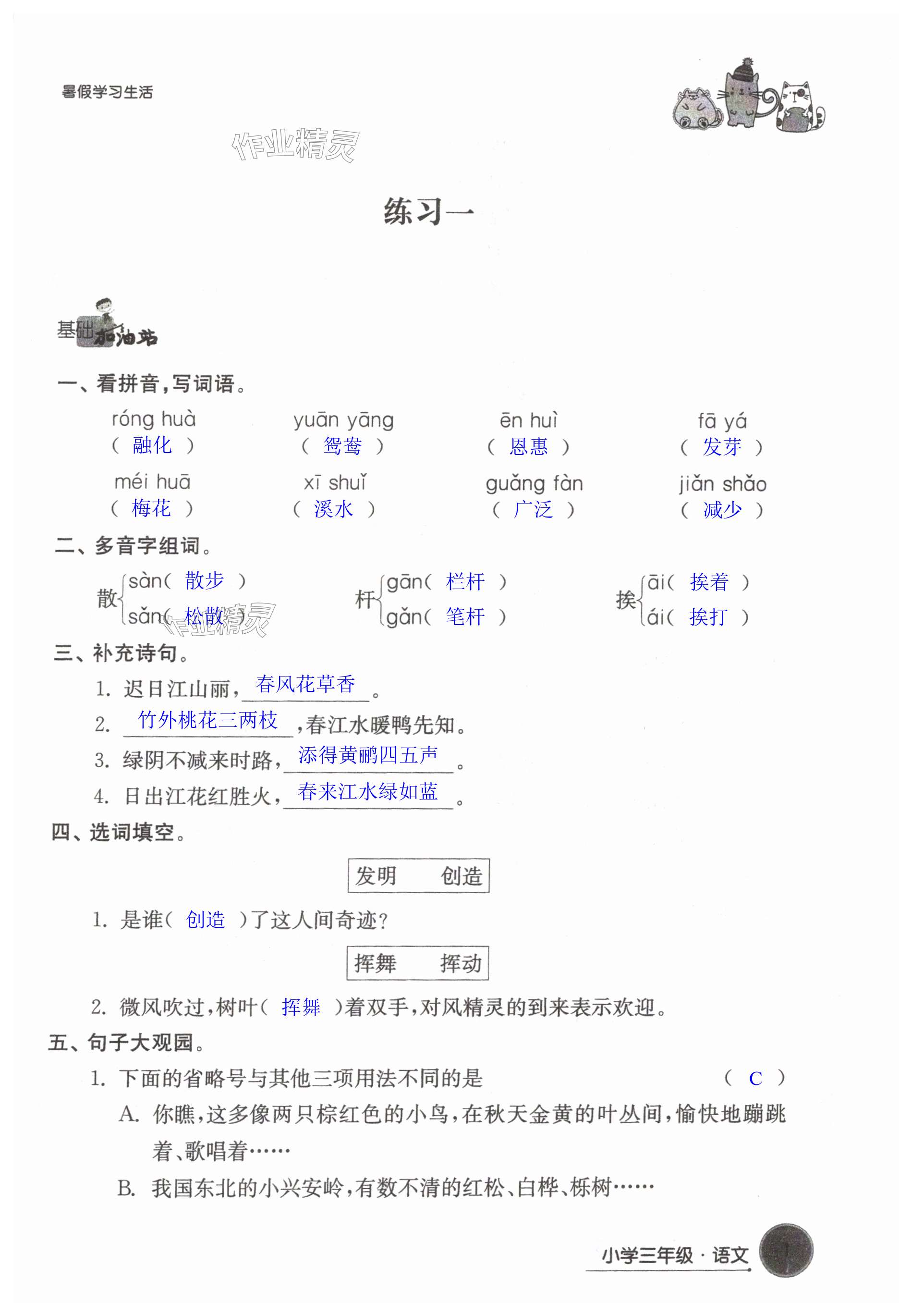 注:目前有些书本章节名称可能整理的还不是很完善,但都是按照顺序排列的,请同学们按照顺序仔细查找。练习册 2024年暑假学习生活译林出版社三年级语文 答案主要是用来给同学们做完题方便对答案用的,请勿直接抄袭。