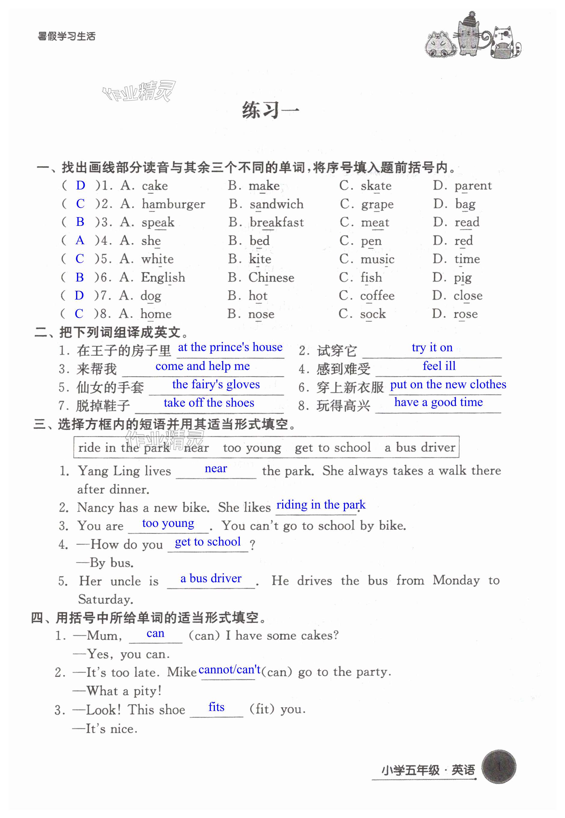 注:目前有些书本章节名称可能整理的还不是很完善,但都是按照顺序排列的,请同学们按照顺序仔细查找。练习册 2024年暑假学习生活译林出版社五年级英语 答案主要是用来给同学们做完题方便对答案用的,请勿直接抄袭。