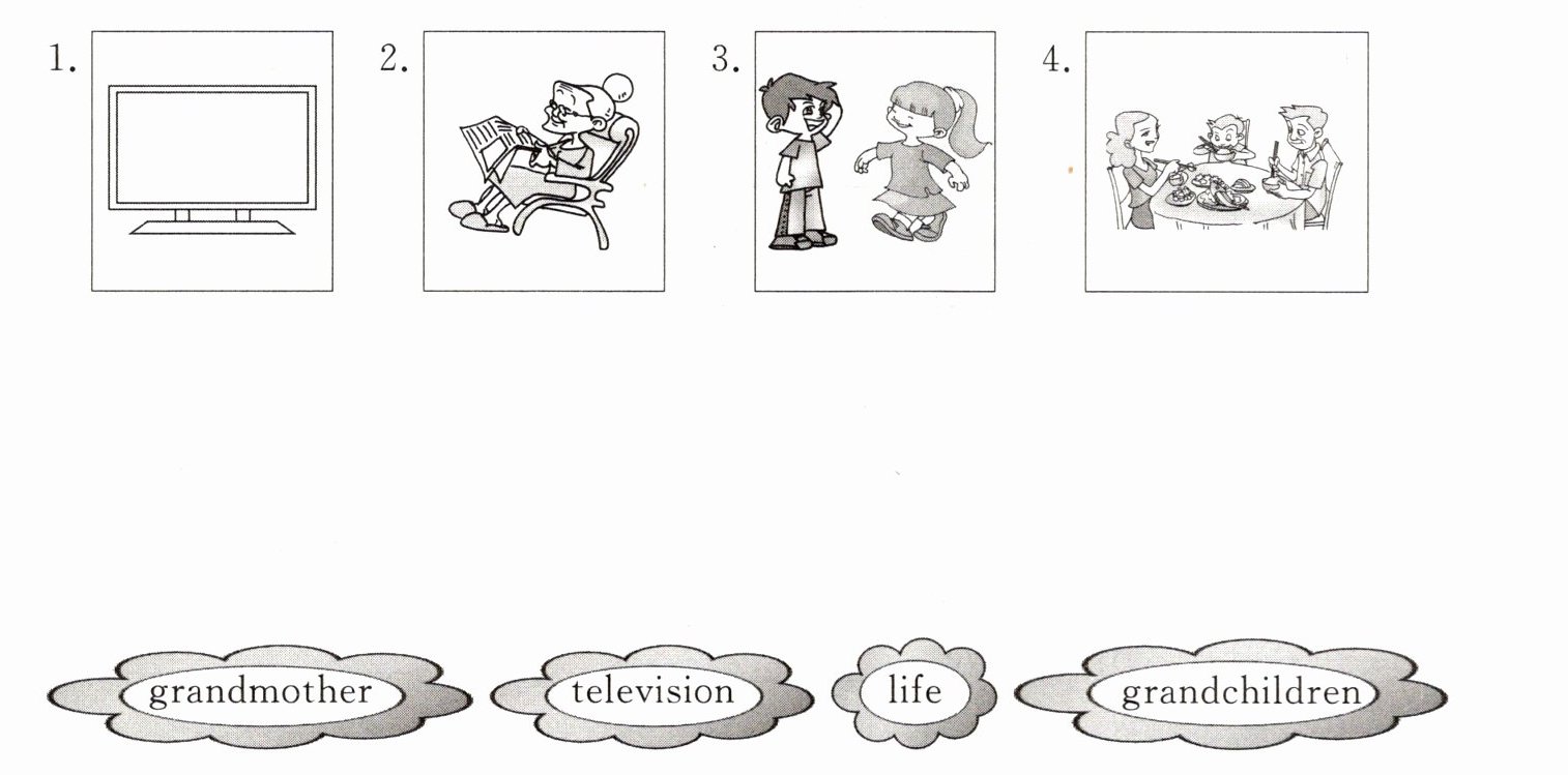 1—television 2—grandmother 3—grandchildren 4—life