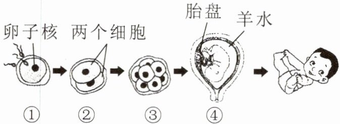 8. 如图是从受精到婴儿的发育过程示意图,有关叙述正确的是( )