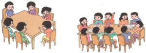 6.联欢会上,大家围坐在一起。如果一张桌子可以围坐6人,两张桌子拼起来可以围坐10人,那么六张桌子拼起来可以围坐多少人?