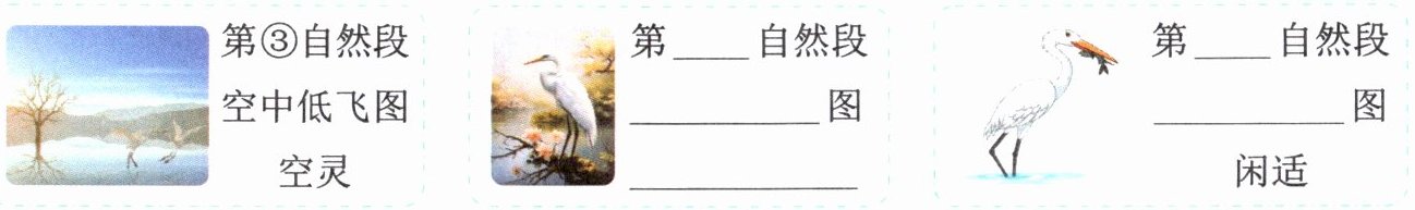 1. 教材变式题小语根据选文内容拍摄了三幅白鹭生活场景图,给图片标上对应的段落序号并补全图注。(5分)