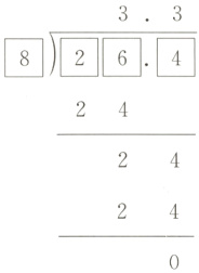 ,用3.3分别乘2,4,6,8,得①3.3×2 = 6.6;②3.3×4 = 13.2;③3.3×6 = 19.8;④3.3×8 = 26.4。④符合题意,所以除数是8,被除数是26.4。