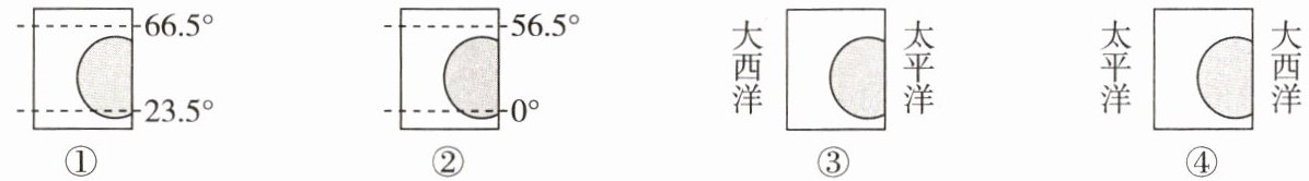 4. 下图中方框表示亚欧大陆,阴影部分表示中国,能够正确表示我国地理位置的是(