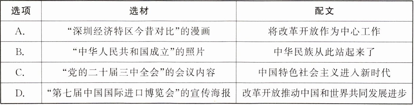 6. 某校九年级开展以“回顾改革开放历程,谱写新时代华章”为主题的手抄报评选活动。以下同学提交的作品符合主题的是( )