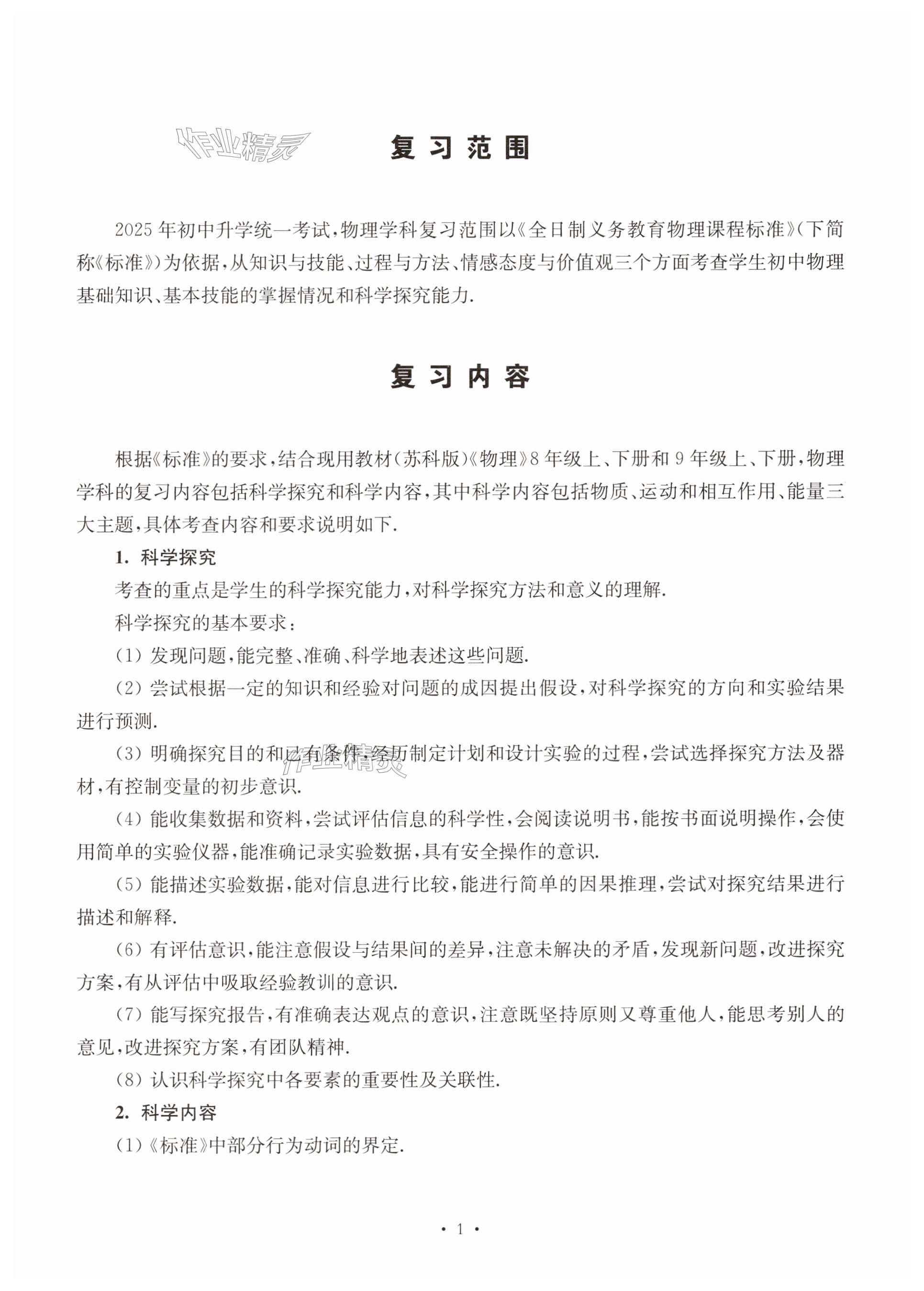 注:目前有些书本章节名称可能整理的还不是很完善,但都是按照顺序排列的,请同学们按照顺序仔细查找。练习册 2025年南京市中考指导书物理 答案主要是用来给同学们做完题方便对答案用的,请勿直接抄袭。