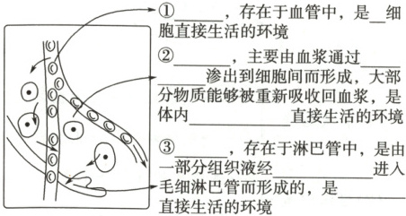 答案: 组织液 血浆 毛细血管和毛细淋巴管