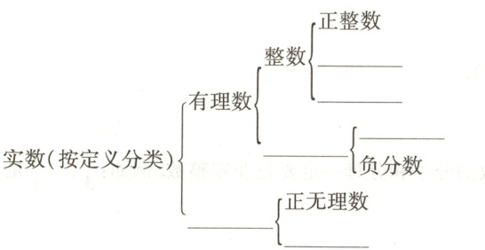 $0$,负整数,分数,正分数,无理数,负无理数。