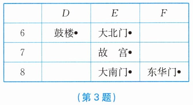 3. 如图,“故宫”“鼓楼”所在的位置分别是( )。