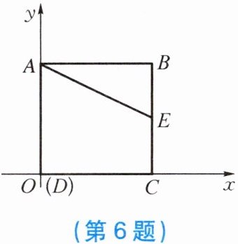6. 如图,边长为 4 的正方形 $ ABCD $ 在平面直角坐标系中,点 $ D $ 与点 $ O $ 重合,且 $ DC $ 在 $ x $ 轴上,$ DA $ 在 $ y $ 轴上。$ E $ 是 $ BC $ 的中点,则点 $ A $,$ B $,$ C $,$ E $ 的坐标分别是