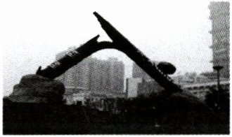 3. 右图是销烟发生地的一座雕塑:整个枪杆两头朝下、中间向上,裂开的一侧形成犬牙状的尖锐裂口,愤怒地直刺蓝天,寓意中国人民禁烟运动的伟大胜利。该雕塑(