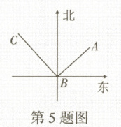 5. 如图,点$ A,B,C $分别表示学校、小明家、超市,已知学校在小明家的北偏东$ 48° $方向上,且$ \angle ABC=90° $,则超市在小明家的(