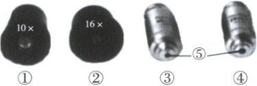 2.(2024·陕西)显微镜配置的物镜放大倍数为10×、40×。如图①②是目镜,③④是物镜,物镜镜头上⑤的直径越大,通过光线越多,视野越亮。显微镜放大倍数越大,观察到的视野越暗。视野中,细胞数量最多的组合是