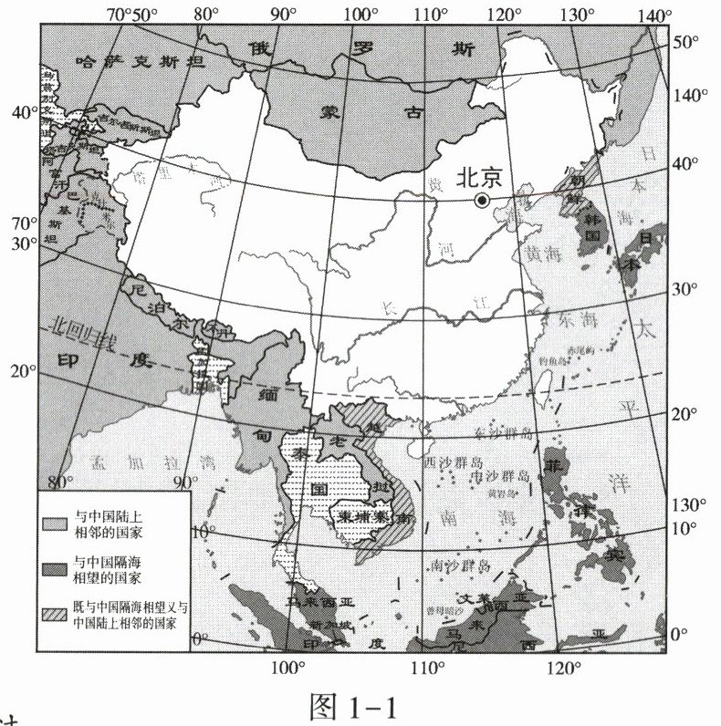 读中国疆域示意图(图1-1),完成4~5题。