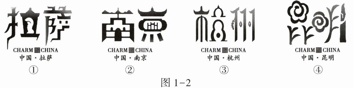 城市名称的字体设计蕴含了当地独特的地域文化元素。读下列四个城市的字体设计图(图1-2),完成6~8题。