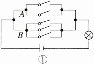 图中按要求接通电路灯泡亮,只要在A中的两个开关或B中的三个开关中合上一个即可,按照分类加法计数原理,共有2+3=5(种)不同的方法.