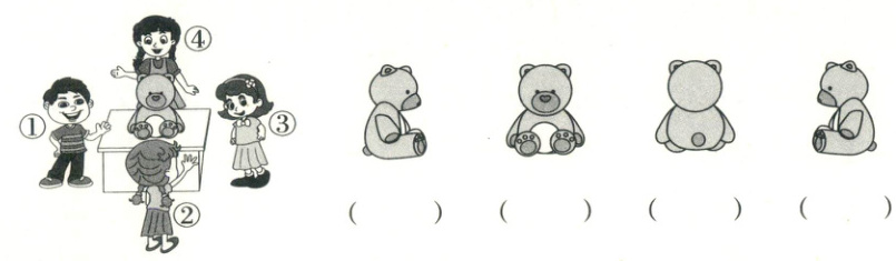 1. 下面右边的图形分别是谁看到的?(填序号)(8 分)