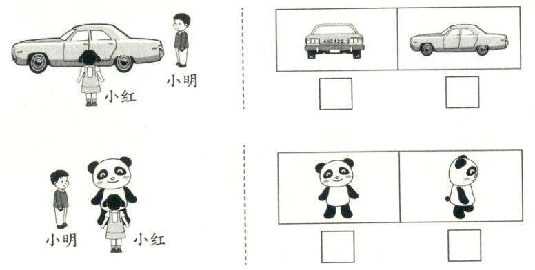 2. 请你在小明看到的图下面画“○”,在小红看到的图下面画“△”。(8 分)