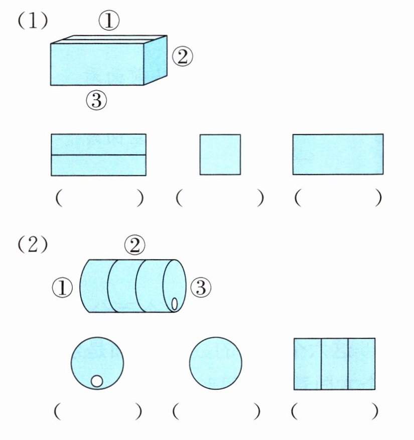 2. 下面各组的三幅图分别是从哪个位置看到的?(填序号)