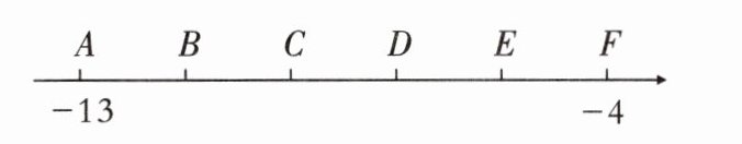 6. 如图,数轴上的六个点满足$AB = BC = CD = DE = EF$,则在点B,C,D,E对应的数中,最接近-8的点是 ( )