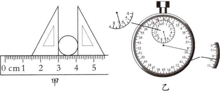 1. 如图甲所示,纪念币的直径为________cm;如图乙所示,秒表的读数为________s。