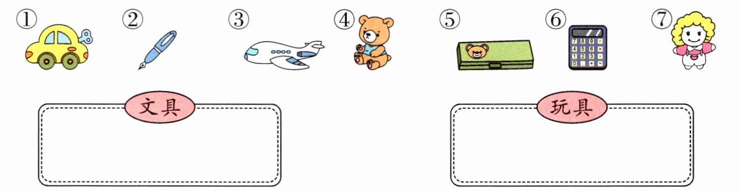 (2)按卡片的形状分一分,涂一涂,填一填。