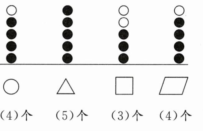 )最少。(2)按卡片的形状分一分,涂一涂,填一填。