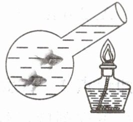 7. 小平同学观看老师演示如图所示的“烧金鱼”实验时,发现烧瓶里的水已经沸腾了,但是金鱼却安然无恙。于是,他就提出“是不是烧瓶里不同部位的水温度不同”的想法,接着老师就让小平同学用手去摸,果然下方烧瓶壁很凉爽、而上方却很热。小平终于知道了金鱼安然无恙的原因。上述画线部分探究主要经历的过程分别是(