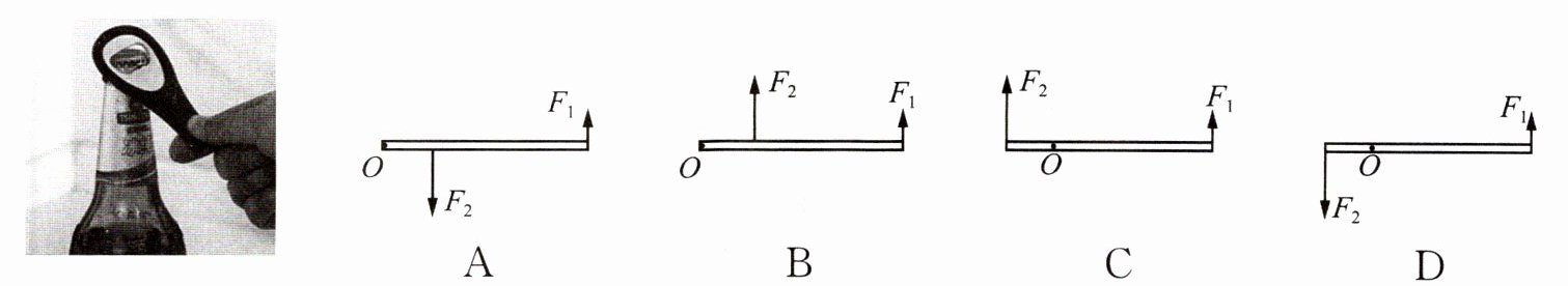 例3 小强开启饮料时,瓶起子可视为一个杠杆,如图所示.下列选项能正确表示其工作原理的是(