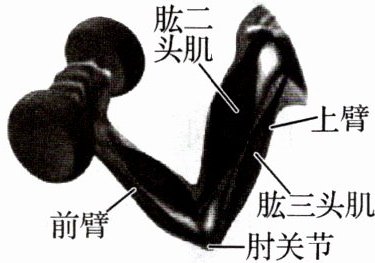 ,上臂中的肱二头肌收缩和肱三头肌伸展产生动力