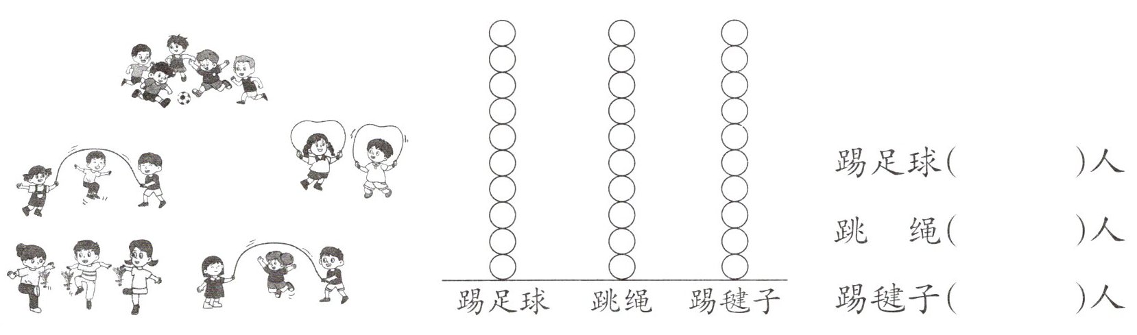 )的人数最多,参加踢毽子的比跳绳的少(5