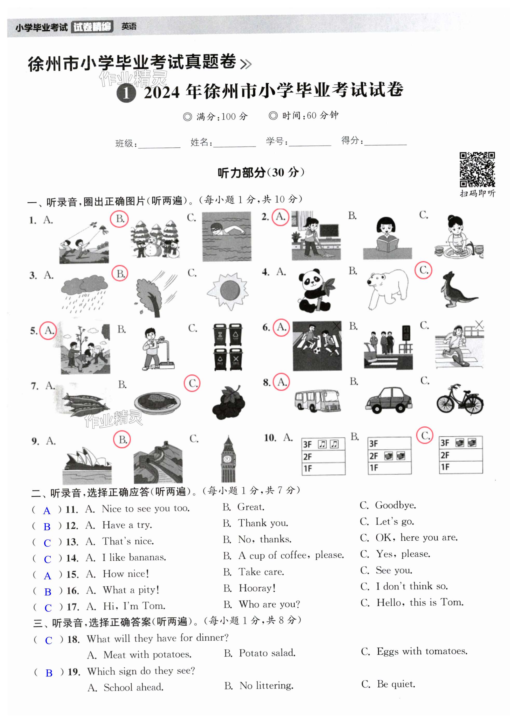 注:目前有些书本章节名称可能整理的还不是很完善,但都是按照顺序排列的,请同学们按照顺序仔细查找。练习册 2025年小学毕业考试试卷精编英语徐州专版 答案主要是用来给同学们做完题方便对答案用的,请勿直接抄袭。