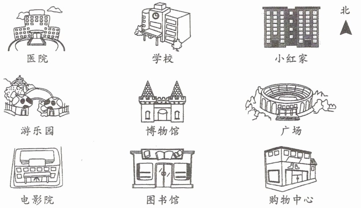 4. 小东从家向南走可到公园,那么他家在公园的(