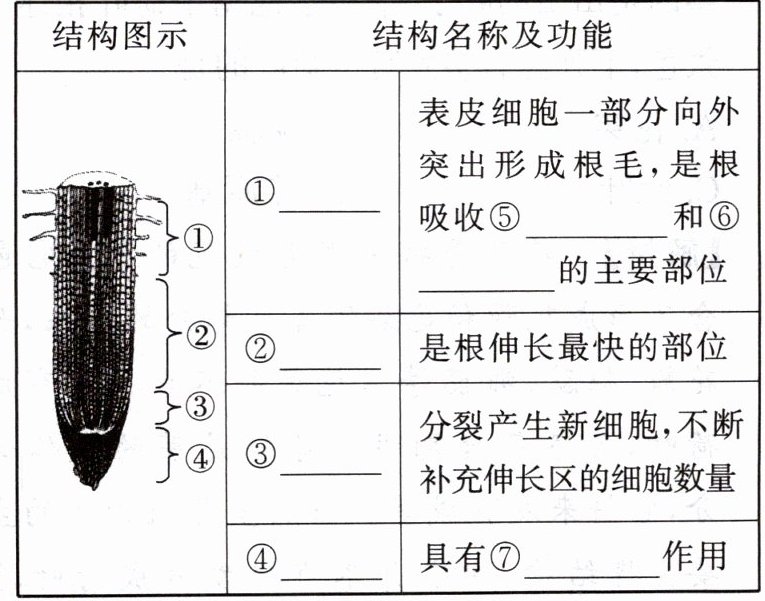 (1)①成熟区 ②伸长区 ③分生区 ④根冠 ⑤水 ⑥无机盐 ⑦保护