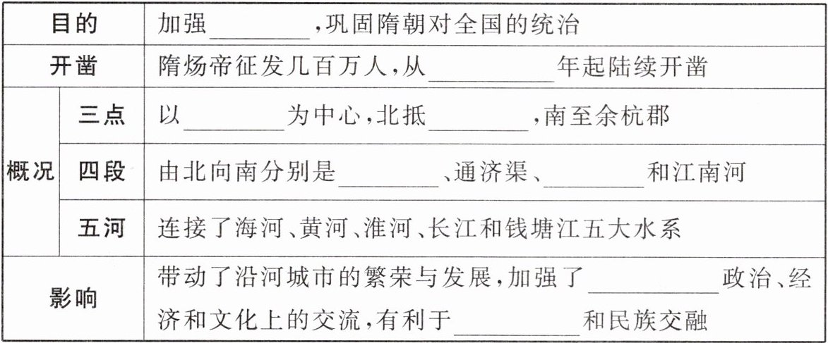 答案: 南北交通 605 洛阳 涿郡 永济渠 邗沟 南北地区 国家统一
