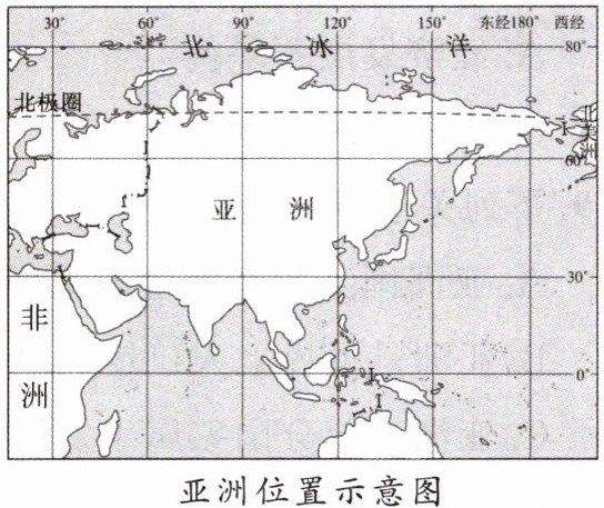 亚洲是世界上面积最大的大洲,右图为“亚洲位置示意图”。据此完成1~2题。