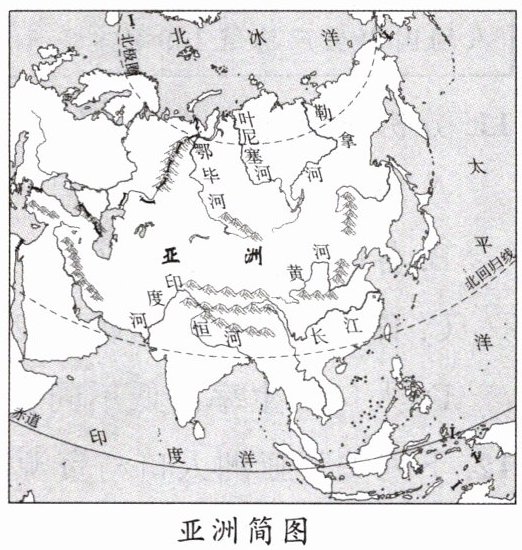 2. 依据亚洲的纬度位置,亚洲主要位于(