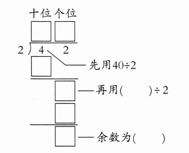 列式为 $ 42 ÷ 2 = ($ ) 用竖式计算为: