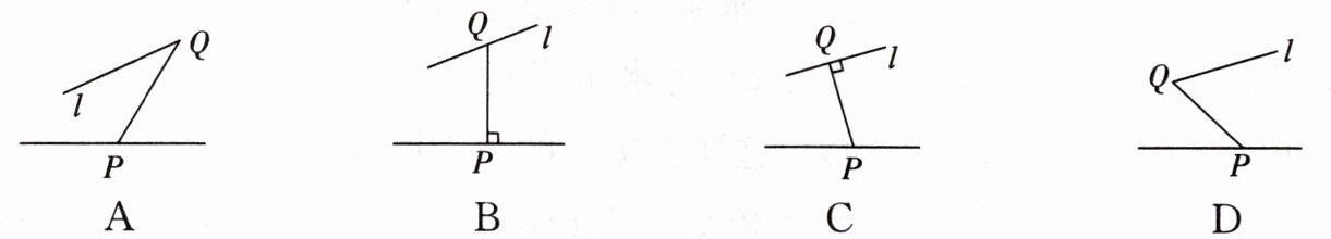 2. 在下列图形中,线段$PQ的长度表示点P到直线l$的距离的是 ()