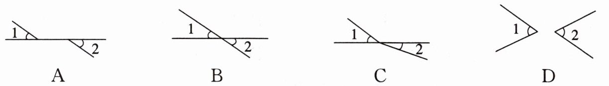 1. 如图所示,$∠1$,$∠2$为对顶角的是 ()