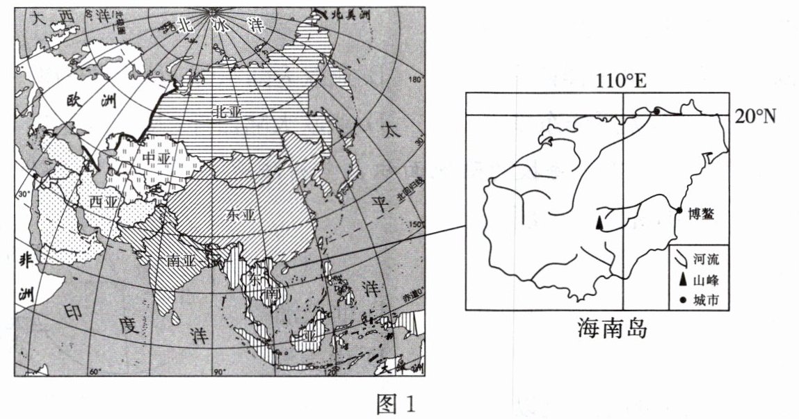 (2024亳州期末)2024年3月28日,备受瞩目的博鳌亚洲论坛年会在海南博鳌拉开帷幕,此次年会的主题为“亚洲与世界:共同的挑战,共同的责任”。读图1,完成1~3题。