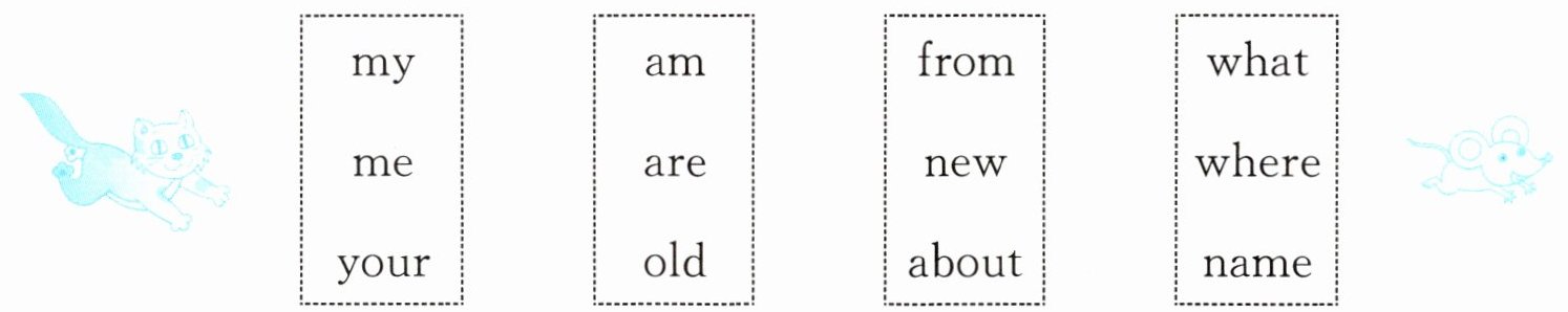 一、圈出每组中不同类的单词,帮助小猫抓到老鼠吧。