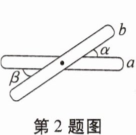 2. 如图,将a,b两根木条钉在一起,并想象成两条直线相交得到一个相交线模型. 若∠α= 35°,要想使∠β= 60°,在a木条不动的情况下,则需将b木条绕点O逆时针旋转