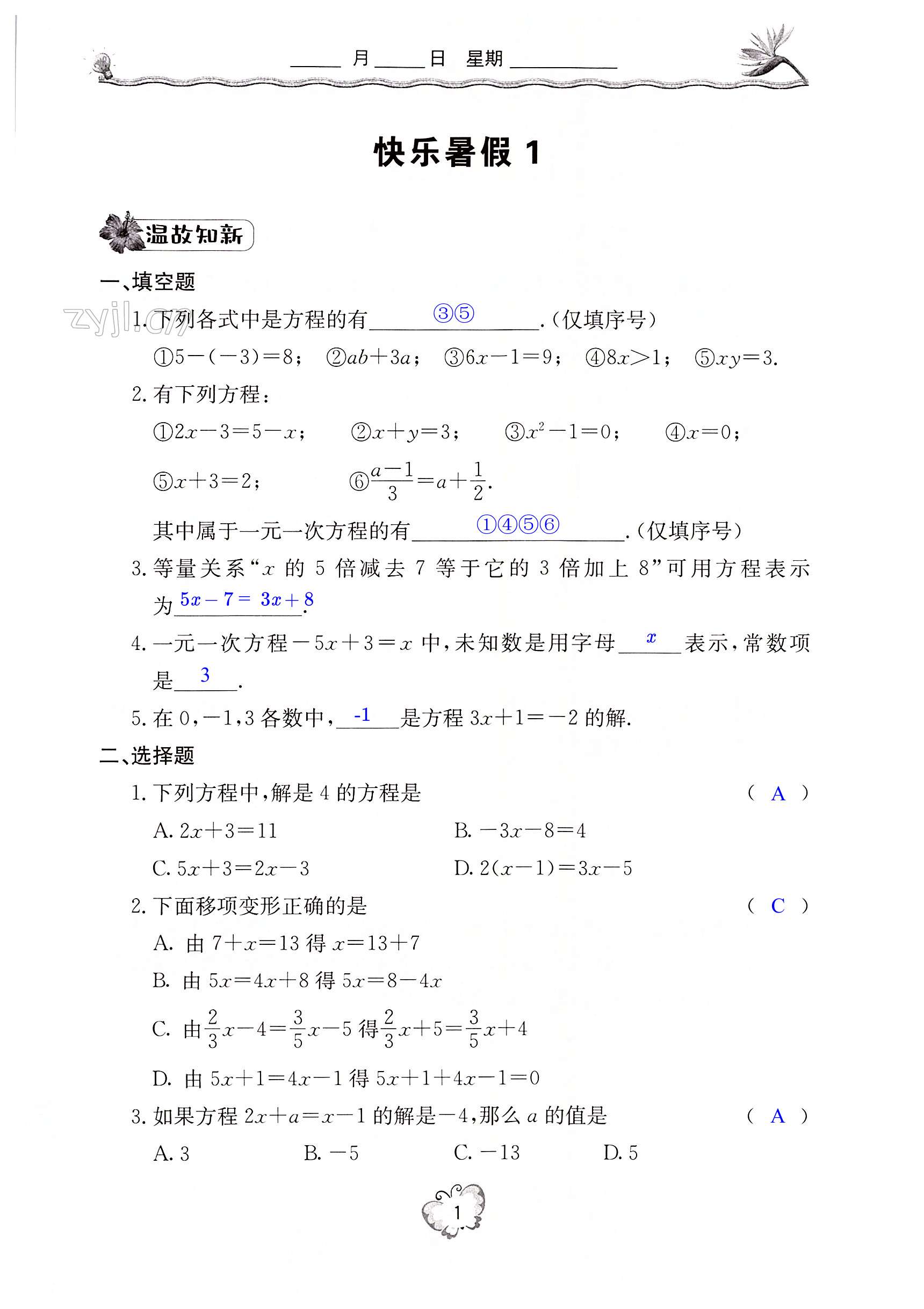 注:目前有些书本章节名称可能整理的还不是很完善,但都是按照顺序排列的,请同学们按照顺序仔细查找。练习册 2022年新课堂假期生活暑假用书七年级数学华师大版 答案主要是用来给同学们做完题方便对答案用的,请勿直接抄袭。