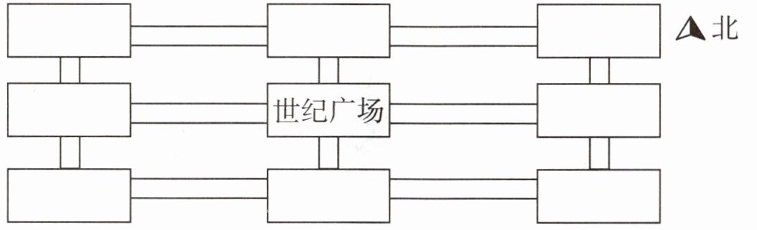 (1)世纪广场的东面是文化广场,西面是博物馆,北面是电影院,南面是新华书店。