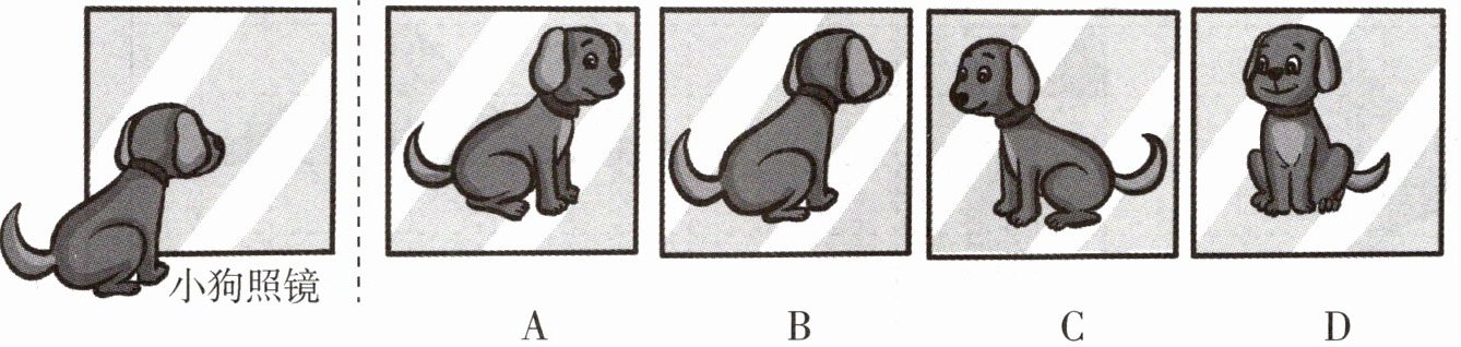 一、如下面左图所示,一只小狗正在平面镜前欣赏自己的全身像,此时,它所看到的全身像是(