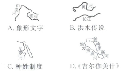 5. [北京丰台区2025高一期中]处在大河流域的古国都有着自己灿烂的文明。下面大河流域与其独有的文明中,对应正确的是(