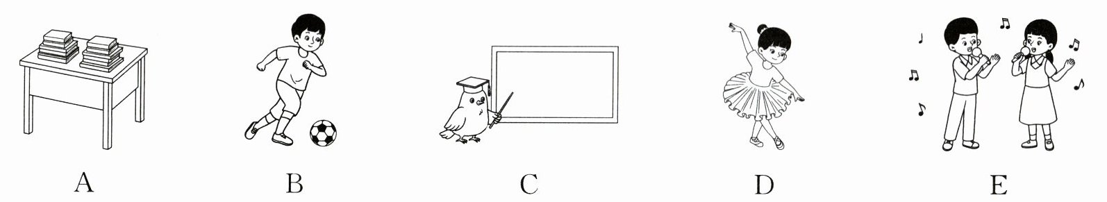 二、听录音,选图片。请选出与所听内容相符的图片,将其标号填入括号内。每小题读两遍。(每小题 1 分,共 5 分)